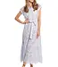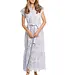 A masterpiece of texture and grace. Pure cotton eyelet, fully lined for comfort, showcases intricate embroidery throughout. The button-front silhouette, cap sleeves, and scalloped tiered hem create graceful movement, while the soft tie belt gently shapes the waist.