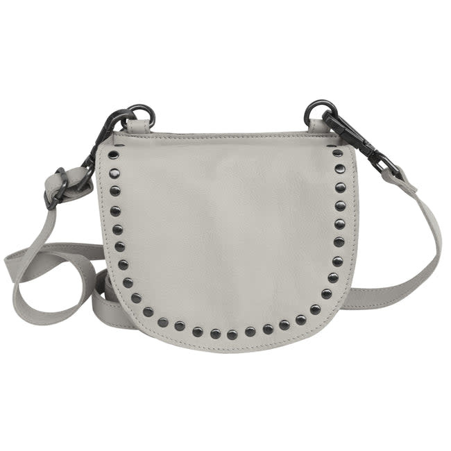 Carry your essentials and stay stylish while doing so with the Latico Janna Crossbody! This women’s crossbody genuine leather bag has a fashionable saddlebag U shape and features a studded border for an edgy look. The bag is large enough to hold a slim or small wallet and your phone, along with other essentials, but is sleek and compact enough to not take up much space, which is ideal for traveling, going to festivals and shows, etc. A great piece to have in your bag collection!