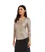 Shimmer in the Karen Kane 3/4 Sleeve Sequin Top in Champagne. Featuring a draped neckline, sheer mesh sleeves, and easy pull-on design for elegant, eye-catching occasions. Read more..