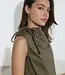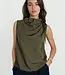 The Naked Zebra Cinched Mock Neck Top in Dark Olive offers elegant drape and modern tailoring. Sleeveless with gathered neckline and elastic hem for versatile, polished wear. Read more..