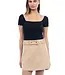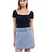 • Mini length creates youthful, modern silhouette