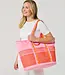 Packed with pockets, designed for adventure. Six outer slip pockets stash sunscreen, shades, and snacks within easy reach. Inside, two slip pockets and a zip pocket keep everything in place. Vibrant color combos and playful wavy trim bring bold, beach-ready energy wherever you go.
