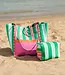 Make a splash with the Samba Tote—your new go-to for sunny days and bold getaways. This spacious tote features vibrant color-blocked stripes, double rope-style shoulder straps, magnetic snap closure, and an inner slip pocket. Read more..